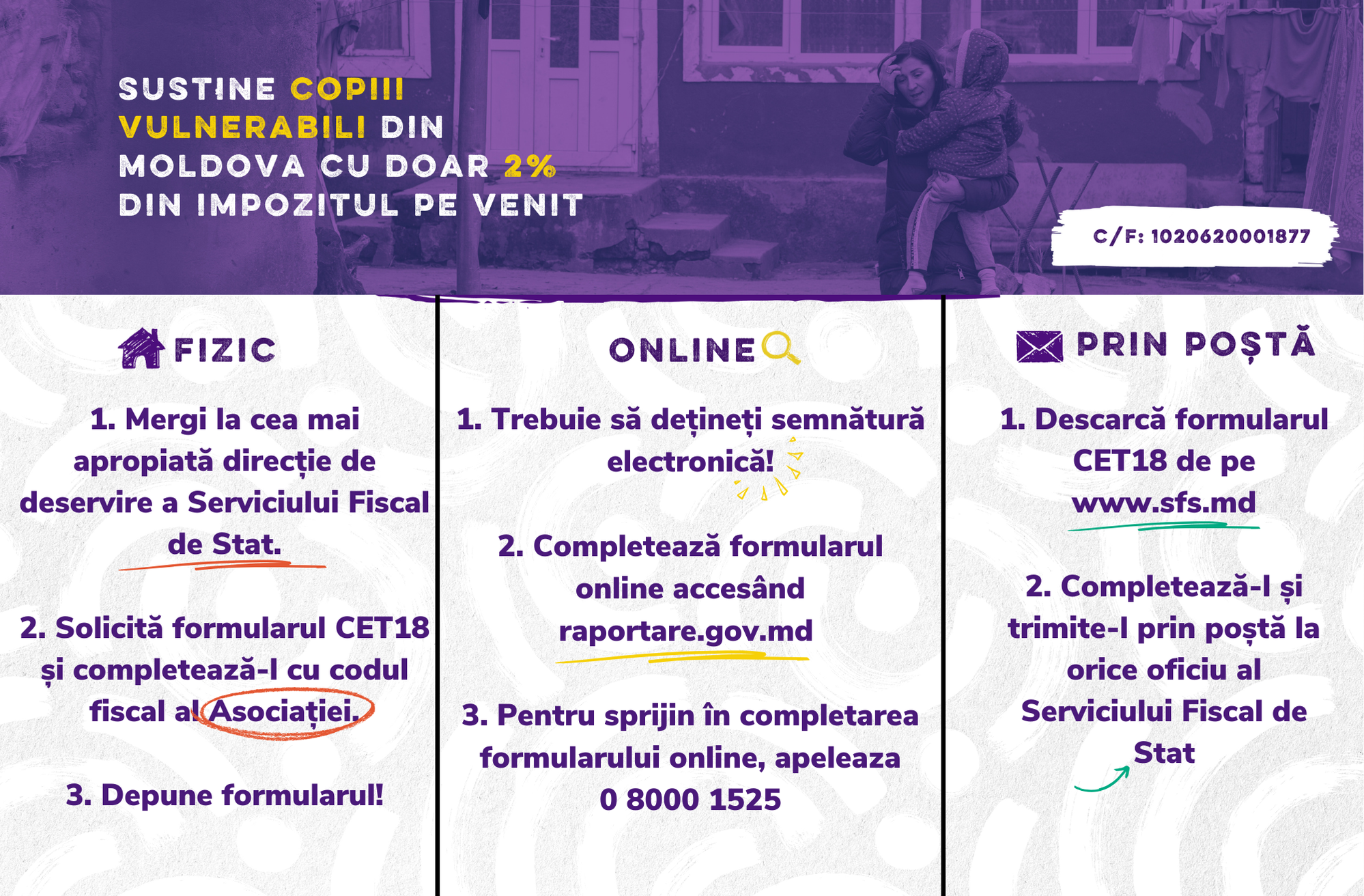 Mulți oameni nu cunosc, dar în Republica Moldova, statul a implementat 8 ani în urmă un mecanism democratic, ce permite ca o parte din impozitul plătit statului de către angajați să fie oferit mediului nonguvernamental, sau asociațiilor și cultelor ce desfășoară activități în folosul societății. Cu alte cuvinte, oricine  muncește oficial și plătește impozite are dreptul de a indica în declarația privind impozitul pe venit organizația ce va primi 2% din valoarea acelui impozit plătit statului. Banii într-adevăr sunt redirecționați de stat și ajung pe conturile organizațiilor beneficiare. Ce-i drept, cam greoi este acest proces, dar guvernul a promis că va fi mai bine și a aprobat la data de 26 februarie 2025 modificarea Regulamentului cu privire la mecanismul desemnării procentuale. O primă modificare se referă la reducerea termenelor de realizare a acțiunilor legate de validarea și transferul către beneficiari a sumelor de desemnare procentuală, drept consecință a prelucrării mai rapide a declarațiilor privind impozitul pe venit prezentate de către persoanele fizice prin care se efectuează desemnarea procentuală. Pe de altă parte, trebuie să știți că sumele transferate organizațiilor respective sunt verificate și fiecare cheltuială este transparentă.