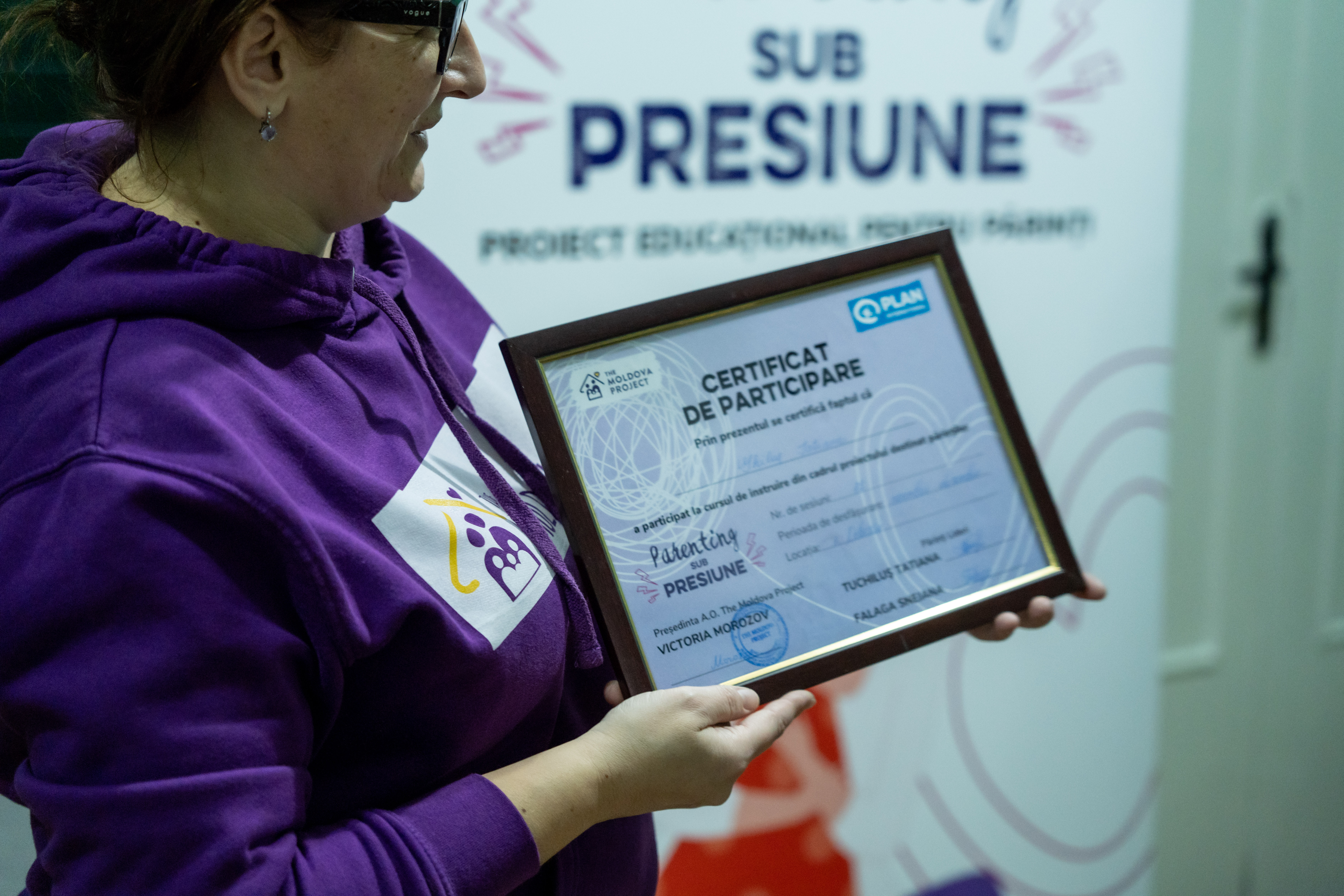De câteva ori pe săptămână, în toamna și iarna lui 2024, Maria asigurându-se că are cu cine lăsa mezina care încă depinde de sânul mamei, urca pe bicicletă ca să ajungă fuguța la sesiunea de informare în cadrul Proiectului Parenting sub Presiune – un program-pilot adus în Moldova de Plan International, organizația ce activează în peste 80 de țări ale lumii pentru a ajuta femeile și copiii din comunitățile vulnerabile.